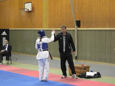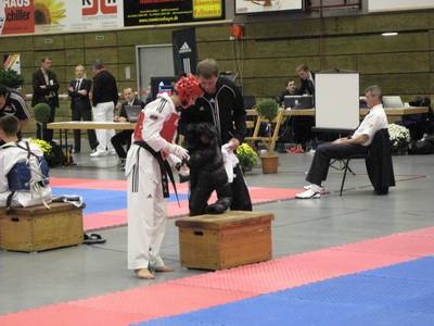 Leider verletzte sich Lisa im Kampf gegen die Gladbeckerin am linken Fuß. Stark gehandicapt ging unsere Sportlerin in den nächsten Kampf (der leider direkt nach dem Ersten stattfand) wieder auf die Kampffläche. Im Viertelfinale verlor Lisa unglücklich.